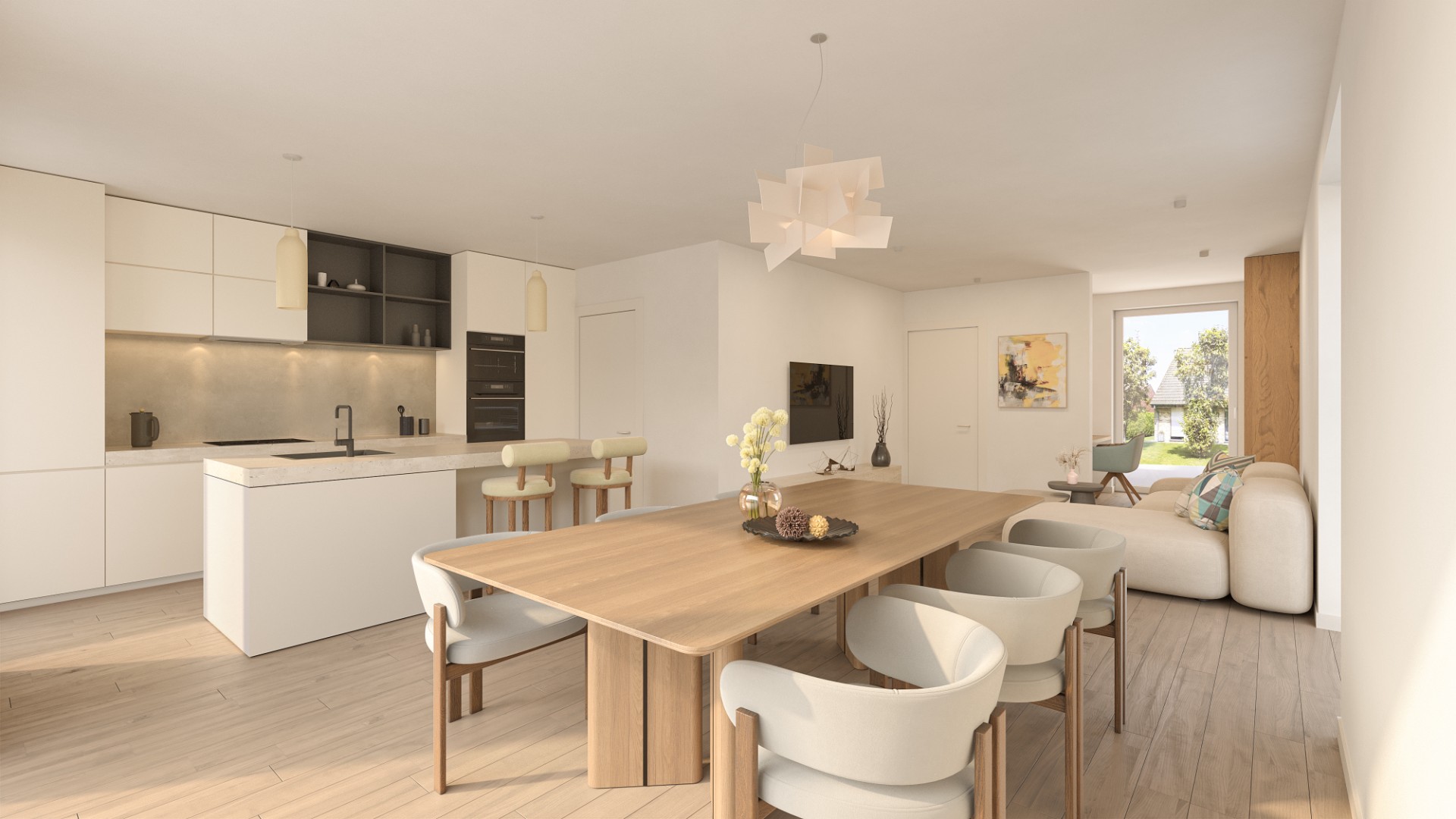 In de halfopen woning krijg je meteen dat gevoel van ruimte en licht. De leefruimtes zijn zo ingedeeld dat alles logisch in elkaar overloopt, waardoor je vlot leeft met een gezin én het eenvoudig houdt als je compacter wil wonen. Met drie slaapkamers is er plaats voor kinderen, een rustige werkplek of een logeerkamer, terwijl het geheel overzichtelijk blijft: snel opgeruimd, aangenaam om in te wonen, elke dag opnieuw.