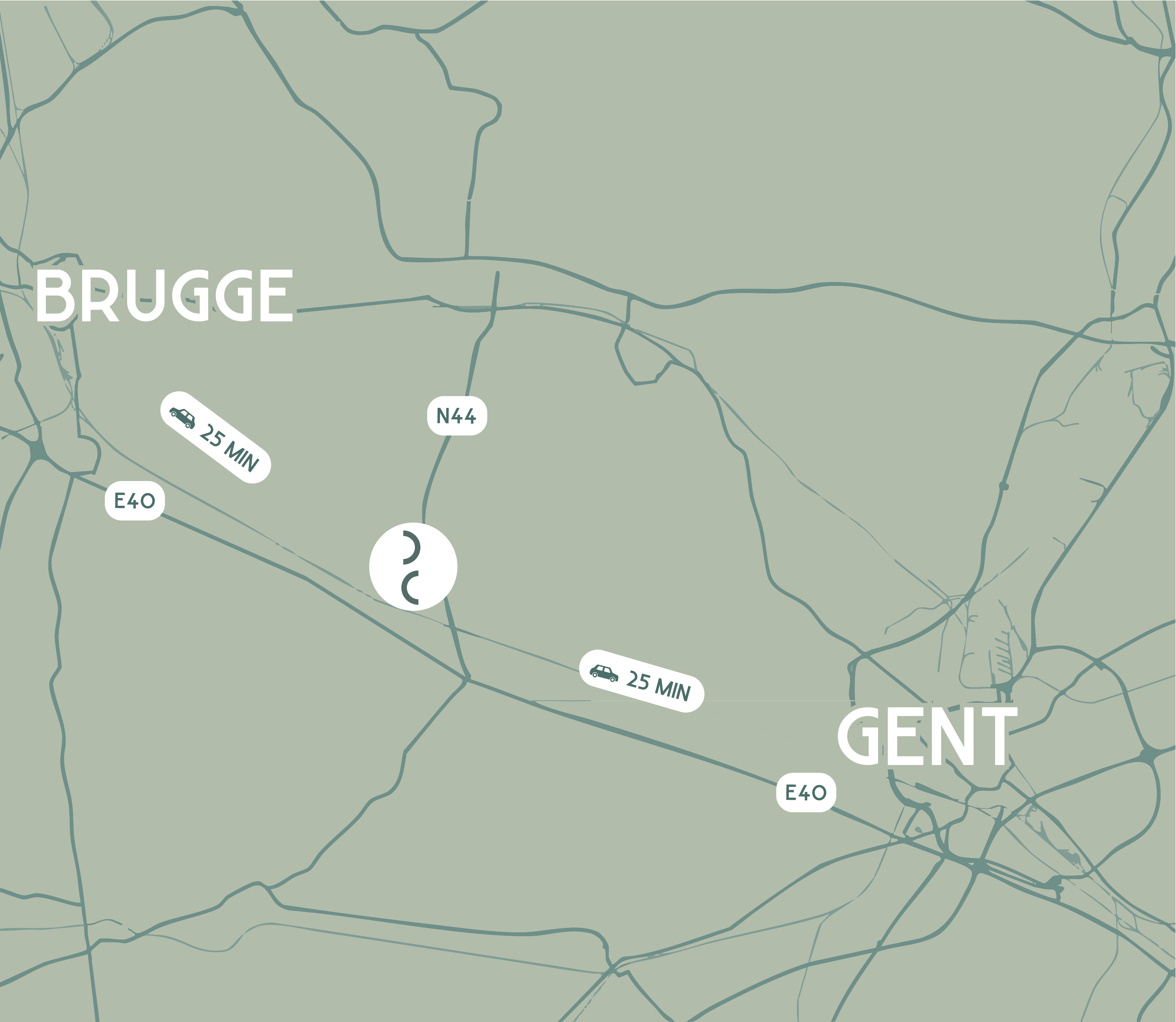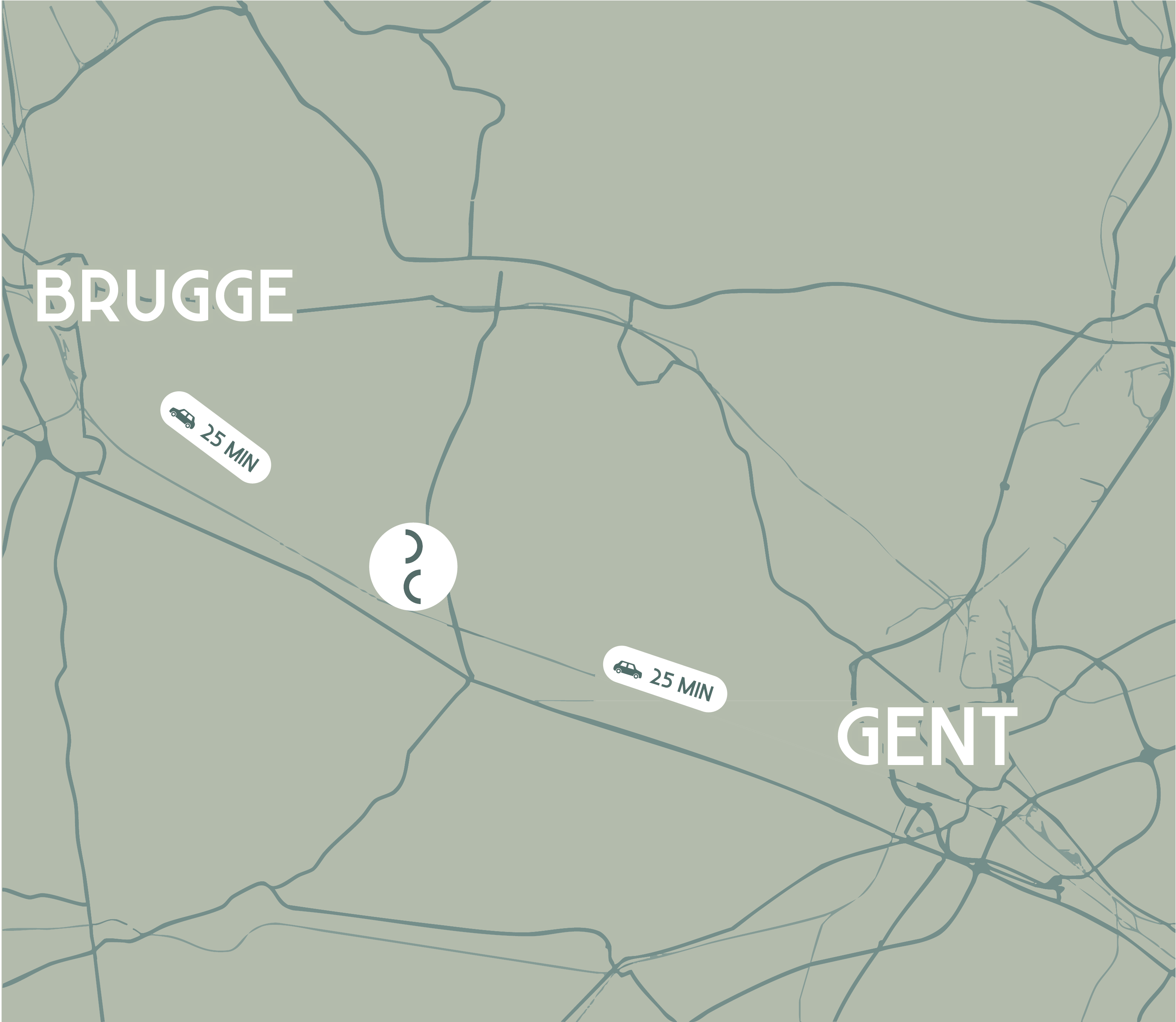 De Clessenaer ligt op een strategische locatie tussen Gent en Brugge, beide vlot bereikbaar in ongeveer 25 minuten met de wagen. Deze centrale ligging maakt het mogelijk om te genieten van de rust en ruimte van een aangename woonomgeving, zonder in te boeten op bereikbaarheid. Voor wie dagelijks pendelt en waarde hecht aan een vlot woon-werkverkeer. Thuiskomen voelt hier als ontspannen, terwijl je weet dat alles wat je nodig hebt nooit